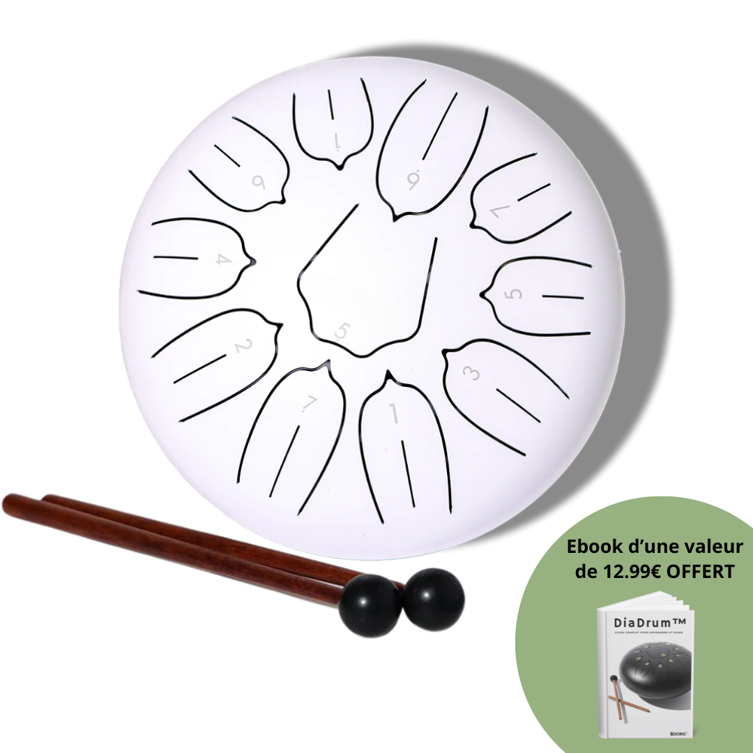 Accordé pour offrir des notes riches et résonnantes, le DiaDrum est idéal pour ceux qui cherchent à évacuer le stress, réduire l'anxiété, ou simplement retrouver un équilibre intérieur.